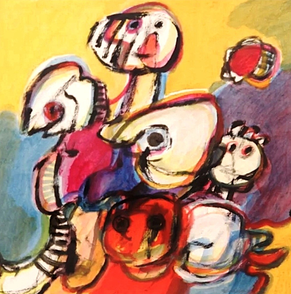 Œuvre d’art originale de Jan Cobbaert – Composition aux personnages vers 1975.
